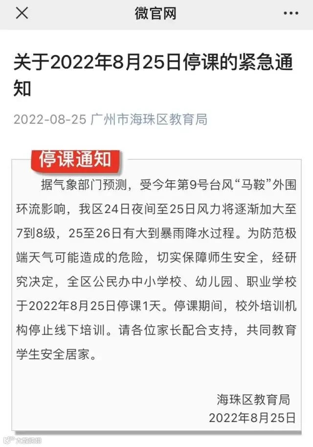 二、全区各级各类学校(含幼儿园、中小学、大专院校、校外培训机构、托管服务、校内军训,高中在校学生留校封闭式管理除外)一律停课,留校学生进行封闭式管理,学校加强安全管控,走读学生留守家里,减少师生户外活动,确保人身安全。