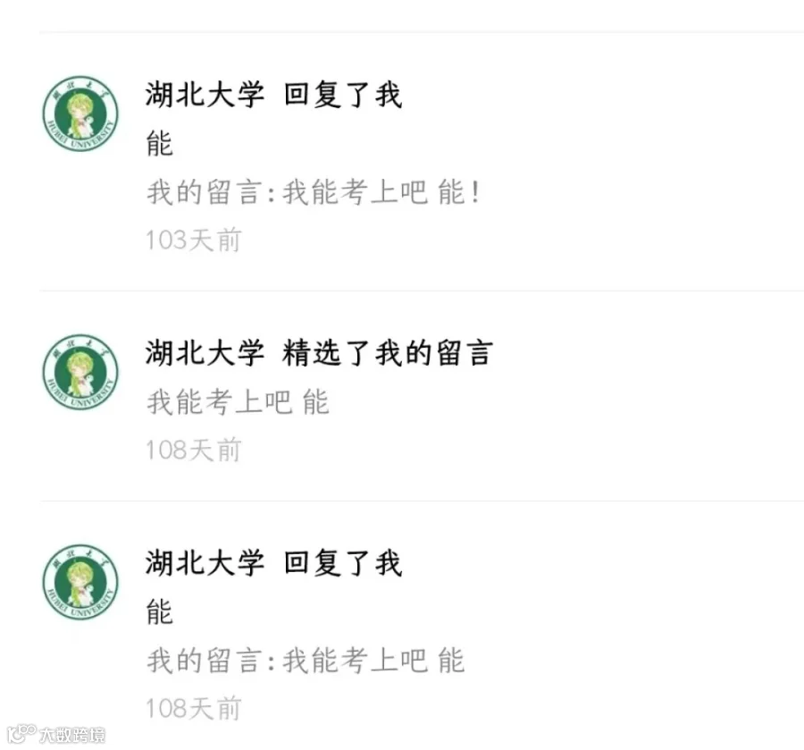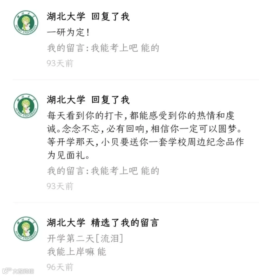 一次,她在学校官微评论区留言:“我能考上吧?”,令她惊喜的是,学校也贴心地回复了一个