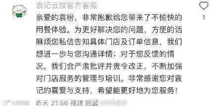 接到投诉后,记者也多次致电袁记云饺官方投诉热线,相关工作人员称客服会积极跟进处理。