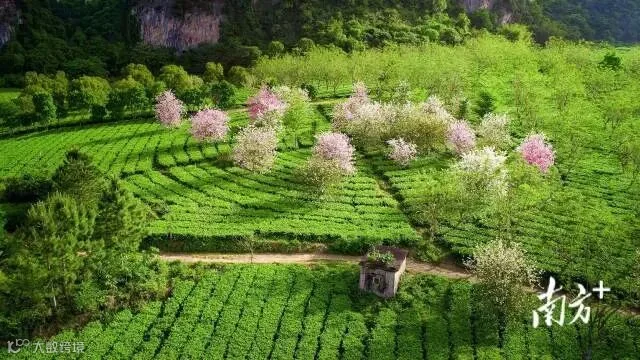 4月14日,清远英德市黄花镇茶园苍翠,紫荆花盛开。陈小权 摄