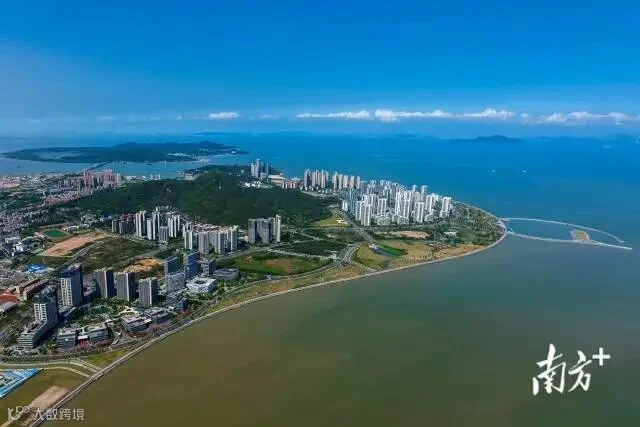 4月11日,鸟瞰珠海唐家湾半岛,美丽海岸线与大海融为一体。沙滩上的咸鱼 摄