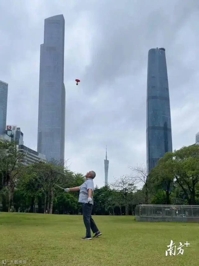 4月16日早晨,市民在广州花城广场的草坪上抖空竹锻炼身体。微游寰宇 摄