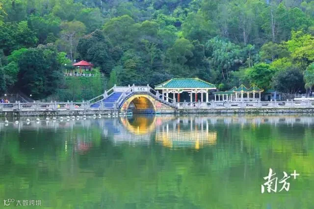 4月12日,傍晚时分,珠海白莲洞公园亮灯,湖光山色尽收眼底。两棵树的恩情 摄