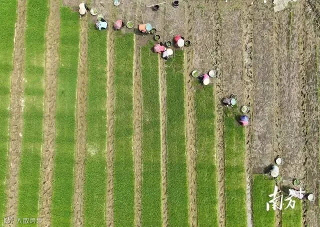 市清城区东城街道江埗村,村民们在忙着移栽秧苗。徐慧敏 摄