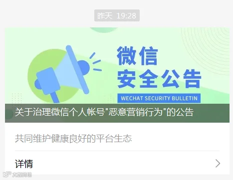 公告称,一直以来,微信始终保持对违法违规行为严厉打击的态度,努力为用户营造一个安全、绿色的使用环境。