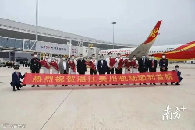 今天8:51,在湛江吴川机场,HU7043航班平稳起飞,飞往济南遥墙国际机场,这是湛江吴川机场开门迎客后的首个起飞航班。