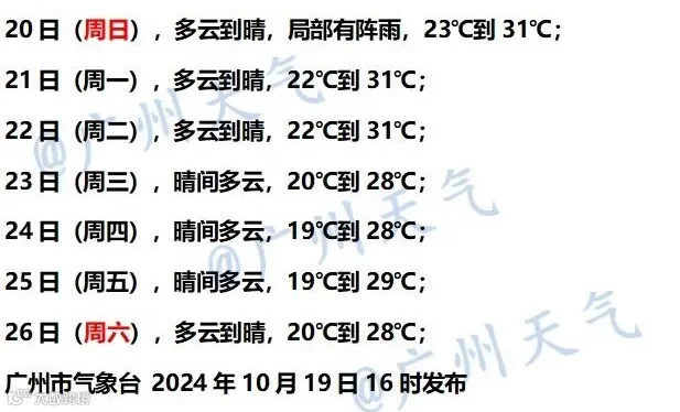 20日,南部市县多云到阴天,有分散性零星小雨转多云,其余市县多云到阴天转晴天。