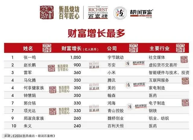 2024胡润百富榜正式发布