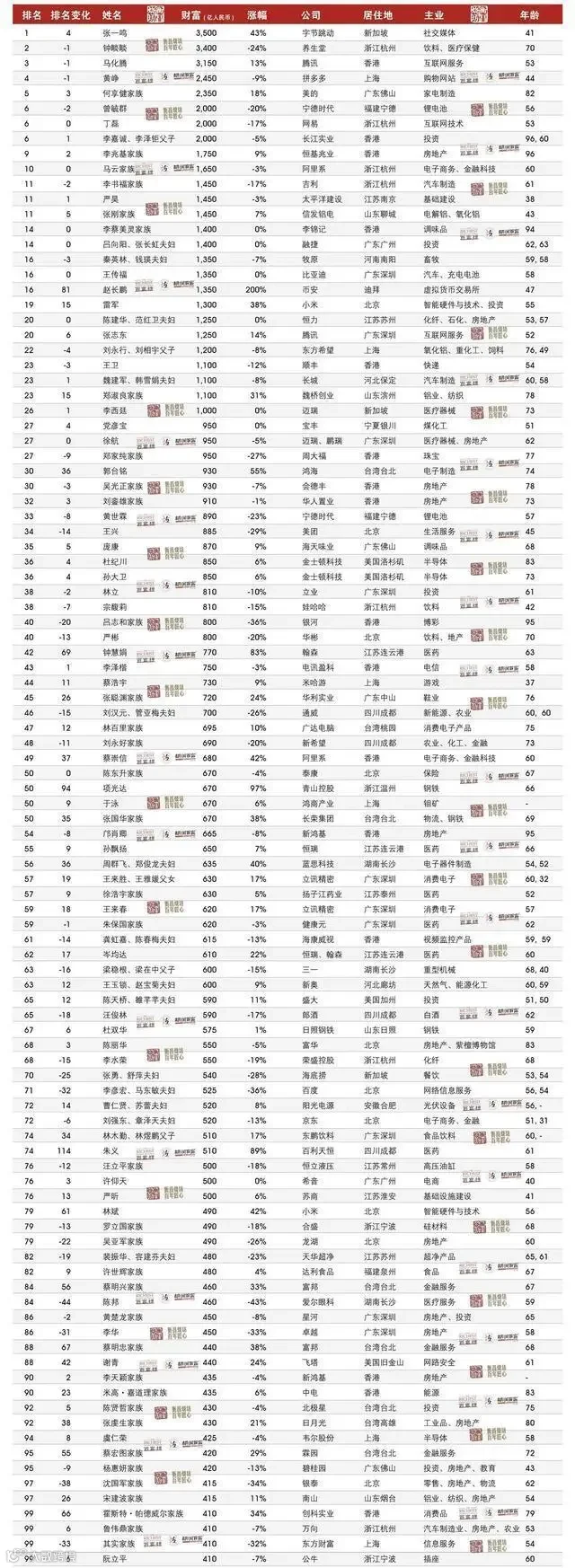 来源:南方网综合胡润百富、潮新闻、证券时报、澎湃新闻、新快报
