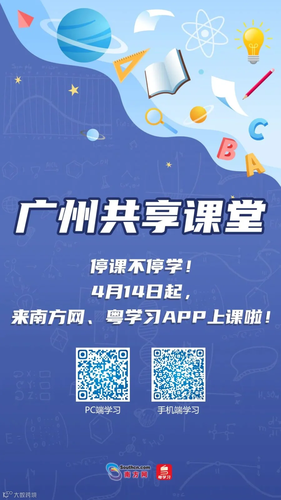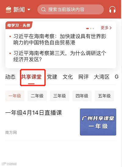 4月14日起,“广州共享课堂”直播课正式上线南方网、粤学习APP。该直播课程覆盖小学、初中、高一高二所有学科,动员了正高级教师、特级教师等超过5000名优秀教师参与录制,每节课包括授课视频、教案、PPT、习题、答疑视频等,满足学生多样化的学习需求。