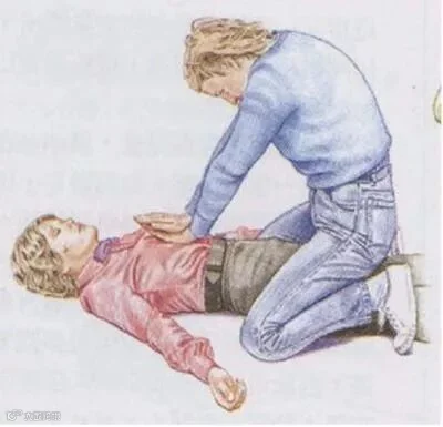先使患者成为仰卧位,然后骑跨在患者大腿上或在患者两边,双手两掌重叠置于患者肚脐上方,用掌根向前、下方突然施压,反复进行。