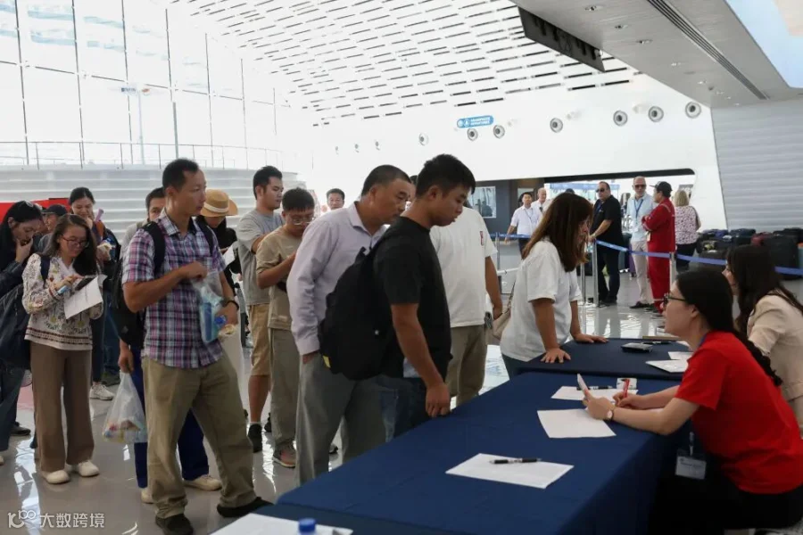 10月1日,从黎巴嫩撤离的中国侨民在塞浦路斯利马索尔港办理入境手续。(新华社记者李京摄)