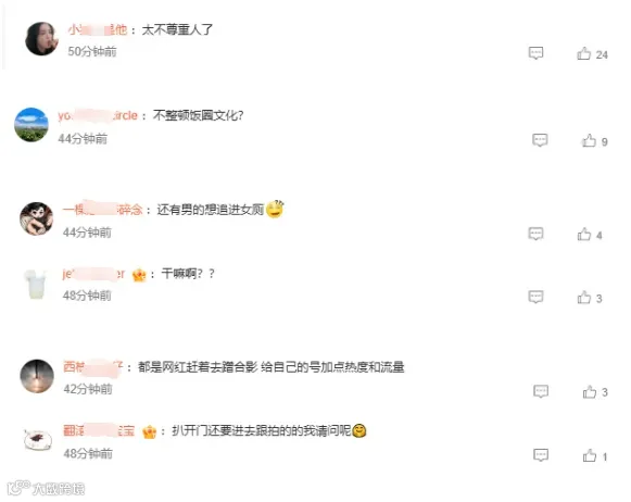 网传视频显示,疑有男粉丝直接打开女厕所的门,追了进去,并举起手机一顿狂拍。