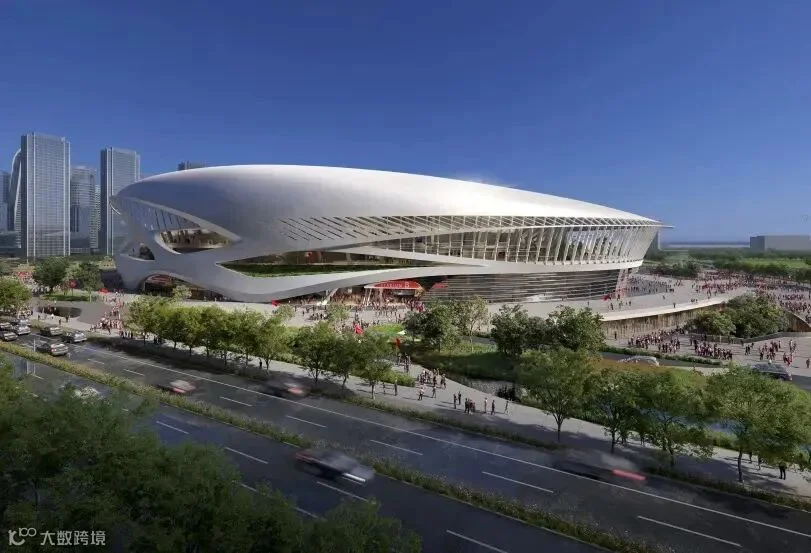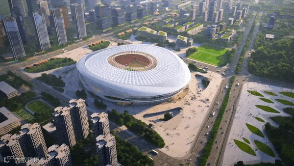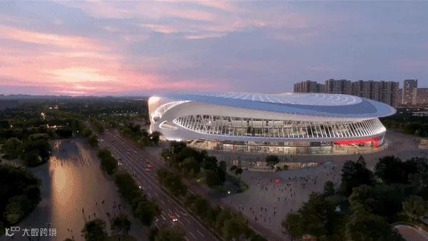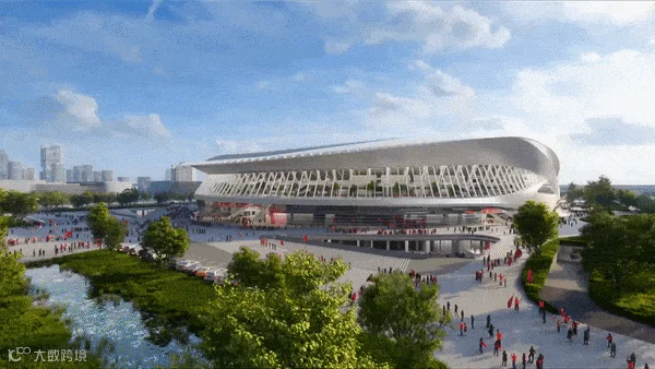 足球场馆以“瑞玉吉祥·生态玲珑”为设计理念,灵感源自“龙凤纹重环玉佩”,以及传承了两千多年的国家级非物质文化遗产广州牙雕技艺。