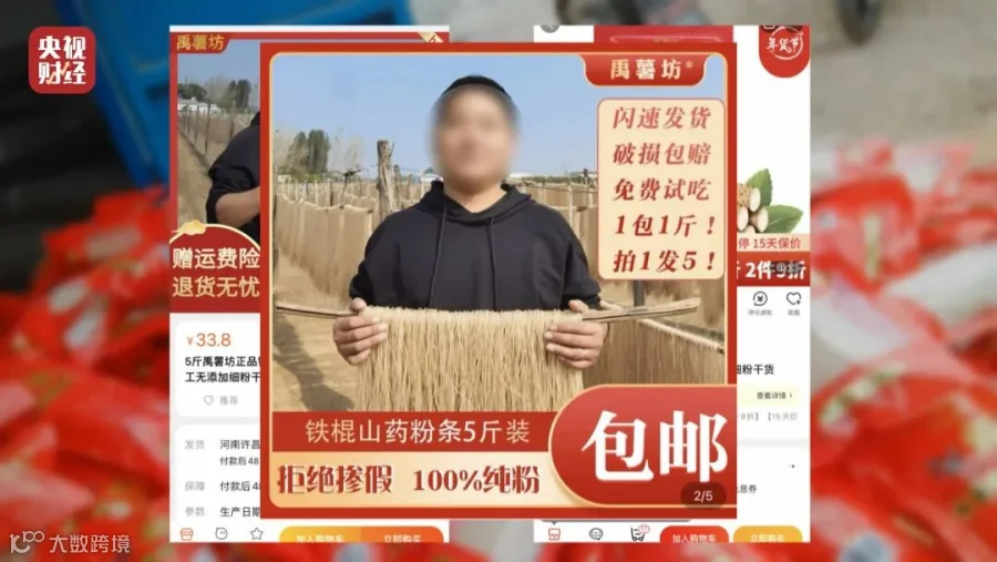 瑞田农副产品有限公司生产的这种所谓的山药粉条,主要通过一些网络购物平台销售,并宣称“拒绝掺假、100%纯粉”。