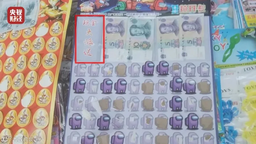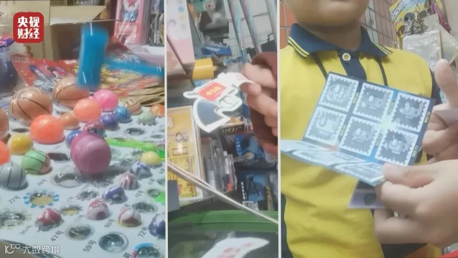 记者发现在不少小学周边,有很多文具店、小卖店充斥着各种各样的抽奖游戏,其中有些奖品还是三无产品,打开后甚至有一股刺鼻的味道。这些抽奖游戏吸引这些缺乏自制力的孩子们一次又一次地掏钱抽奖。