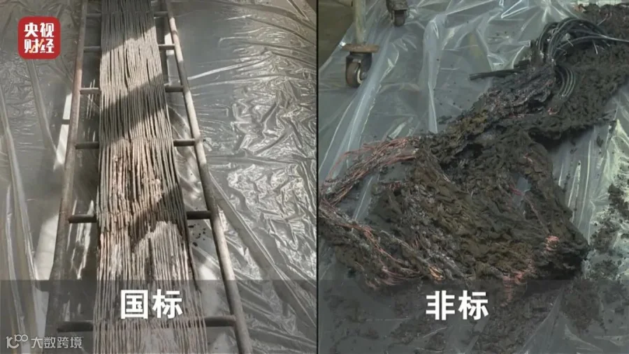广佛机电五金城是华南一带最大的五金市场,部分经营电线电缆的商家都有同一规格两种价格的线缆出售。有商家解释,非标,就是低于国家标准的电线电缆,价格比国标便宜10%到40%左右。在记者询问的几十家经营电线电缆的商户中,至少有三成以上都在经营非标线缆。这些商户还表示,虽然都是非标产品,但国标该有的东西都有,可以掩人耳目。