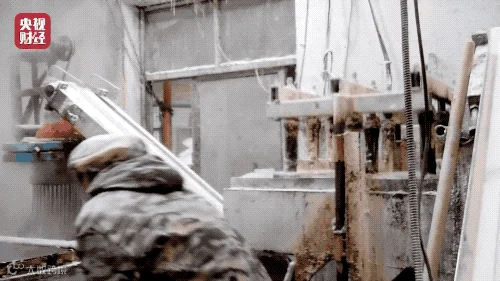 加工粉条的机器上布满了污渍,狭长的过道摆满了一袋袋木薯淀粉,工人将少量玉米淀粉和木薯淀粉混合在一起铲入机器,经过多道工艺,就做成了粉条