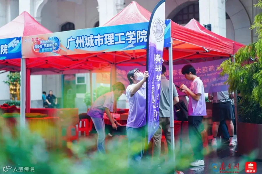 2024年6月15日,高考后的首个周末,北京路步行街在一场大雨后迎来了“预见未来的你”2024广东高考招生公益巡回展的首场活动。来自北京、上海、广州、深圳等全国多个地市的50所高校,与考生和家长进行了面对面的深入互动。