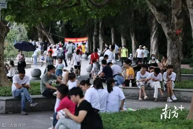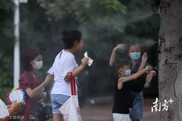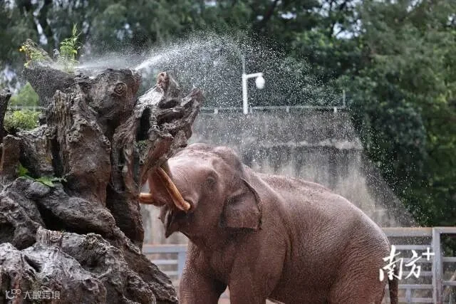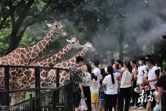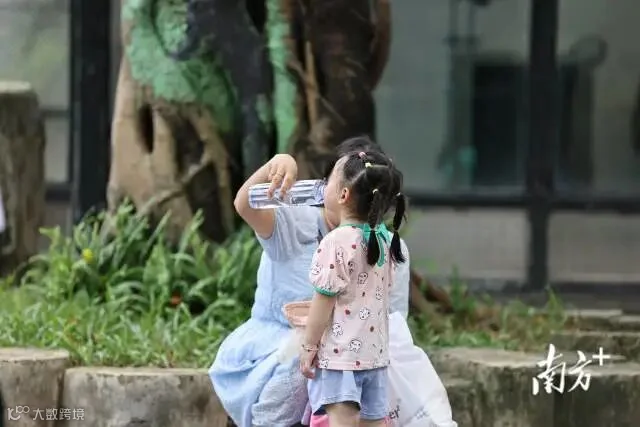 近日,广东“炎值”爆表,今天依旧是热浪滚烫的一天。据@广东天气预报,7月17日15时,全省最高温已突破35℃。广州动物园内,人们“全副武装”抵御暑热,小风扇、遮阳伞、遮阳帽统统派上用场,动物们则纷纷躲在喷水设施下解暑。