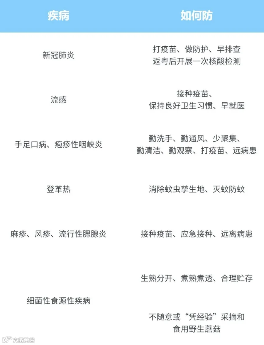 ☑ 打疫苗:建议6月龄及以上有意愿接种流感疫苗并且没有禁忌症者预约接种流感疫苗。尤其是老年人、儿童、孕妇、慢性病患者、6月龄以下婴儿的家庭成员和看护人员等重点人群,以及医务人员、养老机构、长期护理机构、福利院、托幼机构、学校、监所等场所工作人员。