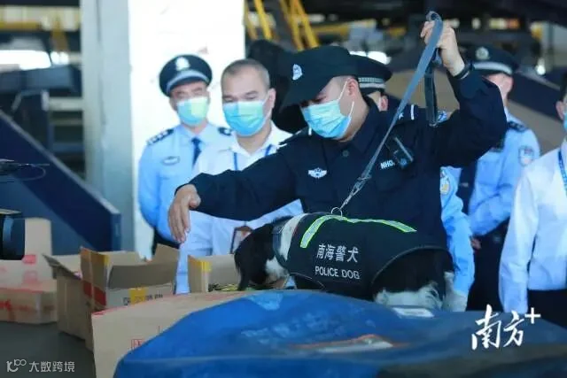 佛山警方携带警犬对寄递物流场所进行检查 (图文无关)