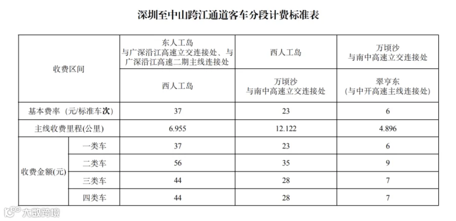 深中通道管理中心副主任马二顺介绍,根据省交通运输厅、省发展改革委、省财政厅联合印发的《关于深圳至中山跨江通道车辆通行费收费标准的批复》,经省人民政府同意,深中通道全线车辆通行费收费标准为66元/标准车次。