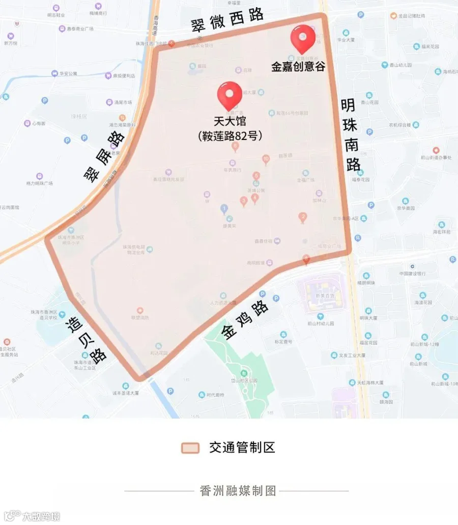 自2022年6月22日凌晨5时起,对香洲区前山街道莲塘社区内翠屏路、翠微西路、明珠南路、金鸡路、造贝路围合区域(见附图)进行临时交通管制。