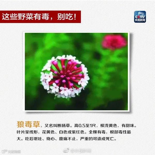 断肠草中毒后可能出现:呼吸麻痹、眩晕、言语含糊、肌肉弛缓无力、复视、视力减退、腹泻腹痛、口吐白沫、恶心呕吐等症状。