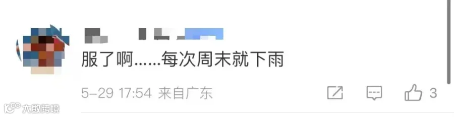 网友:每次周末就下雨,服了