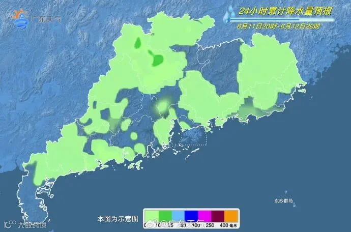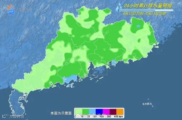12日,南部沿海市县和粤西北市县多云间阴天,有(雷)阵雨局部(大)暴雨,其余市县多云,有分散(雷)阵雨局部大雨。广东大部市县最高气温介于31℃~35℃之间。