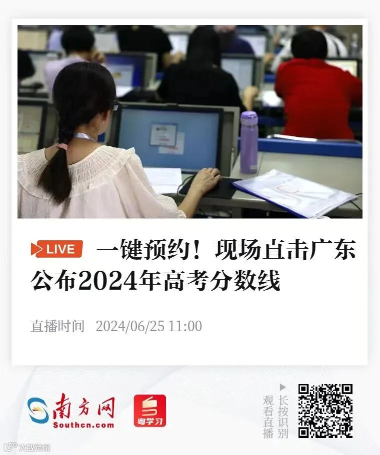 6月25日,广东省教育考试院发布2024年广东高考各批次院校录取最低分数线。