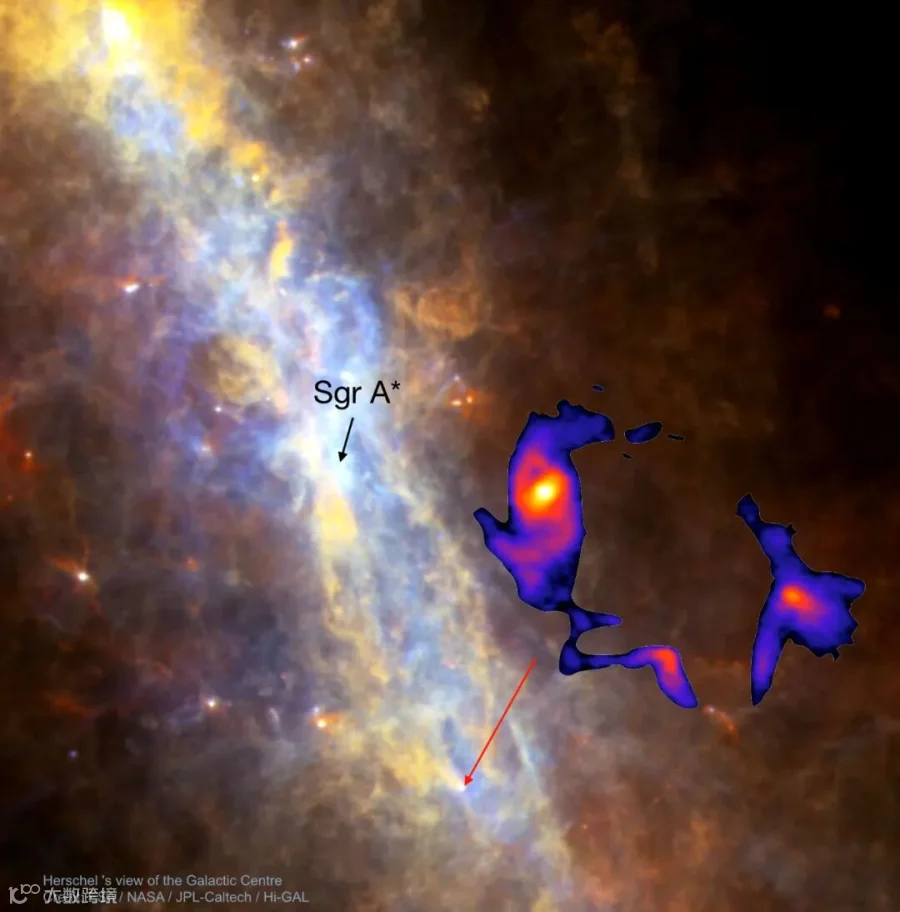 首次“看见”的原恒星盘在银河系中心示意图(红色箭头)。(受访者供图)