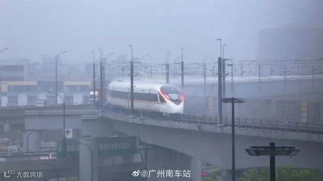 据“广州南车站”微博消息:6月18日,受贵广高铁沿线强降雨影响,广州南站开往贵阳、成都、重庆方向的D2806、D214、D1810、D1762、D2820次等多趟列车晚点或停运,铁路部门将根据沿线降雨变化情况实时调整列车开行方案,具体受影响车次请以12306网站(手机APP)、车站公告为准。