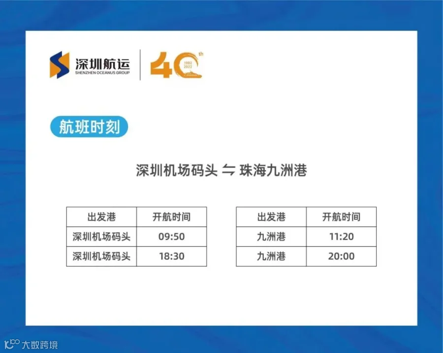 根据航线计划,航线恢复运营后,每日往返两地的航班数量总计4班。其中,由深圳机场码头出发的航班时刻为9:50和18:30;由珠海九洲港出发的航班时刻为11:20和20:00。