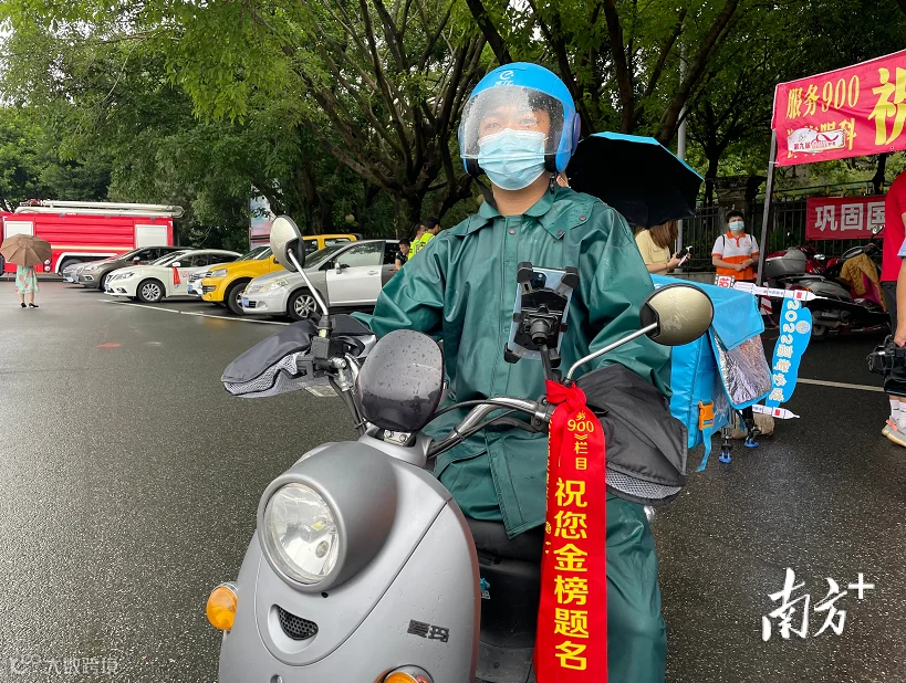 外卖骑手曾先生今天早上7:49接到一名考生的求助,于是他骑着车把考生顺利送到了考点,“只要考生有需要,送准考证、身份证,甚至考生都可以!我还在后备箱准备了雨衣给他们。因为我没有参加过高考,觉得特别遗憾。”