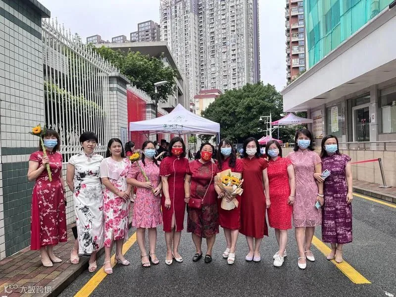 深圳中学考生们已陆续进场完毕,考场外家长穿着统一旗袍为孩子加油鼓劲,助力孩子旗开得胜。