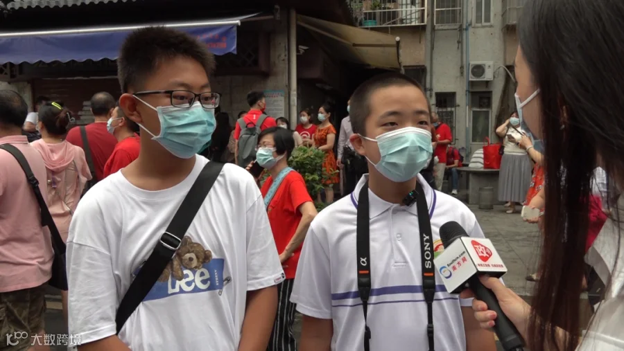 有几位初中生也来到了考场前。他们,自己是来送哥哥姐姐参加考试,顺便感受高考的氛围。