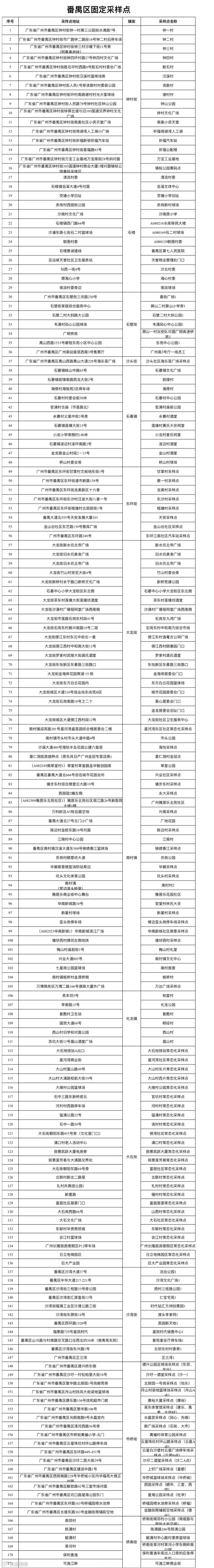 番禺区171个固定采样点: