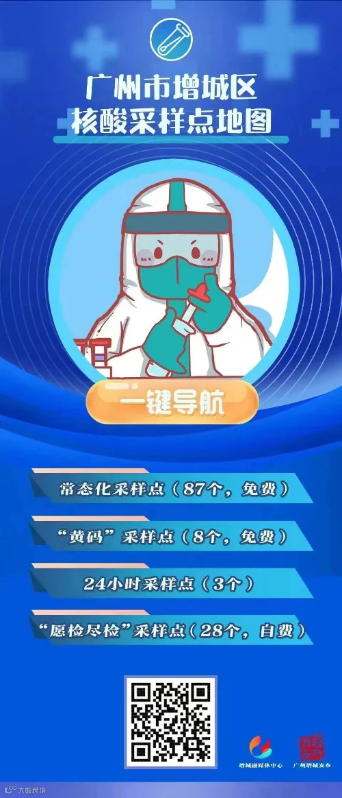 此外,为方便黄码、中高风险地区所在城市来(返)穗人员进行核酸检测,快速查找身边的核酸检测机构服务点,现在最新上线“花都区核酸检测地图”,自助查询、一键导航服务!