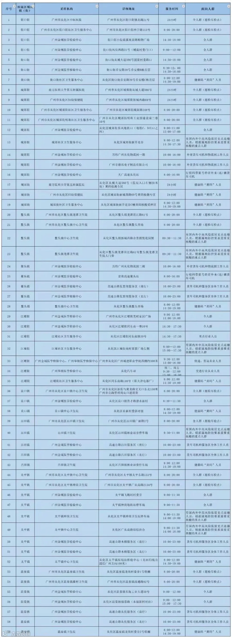 59个核酸采样点一览
