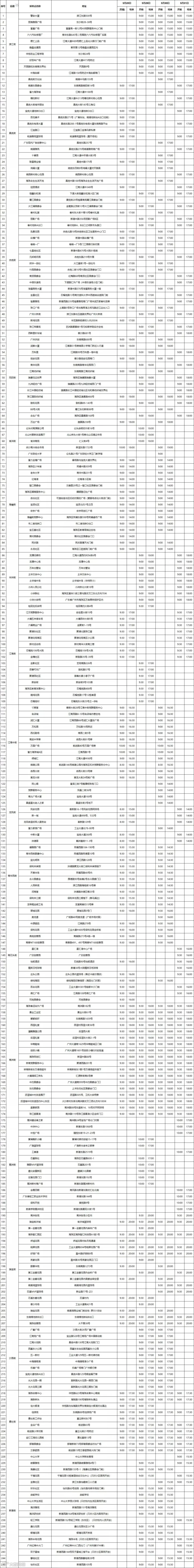 海珠区社会面常态化核酸采样点信息表(5月28日-5月31日):