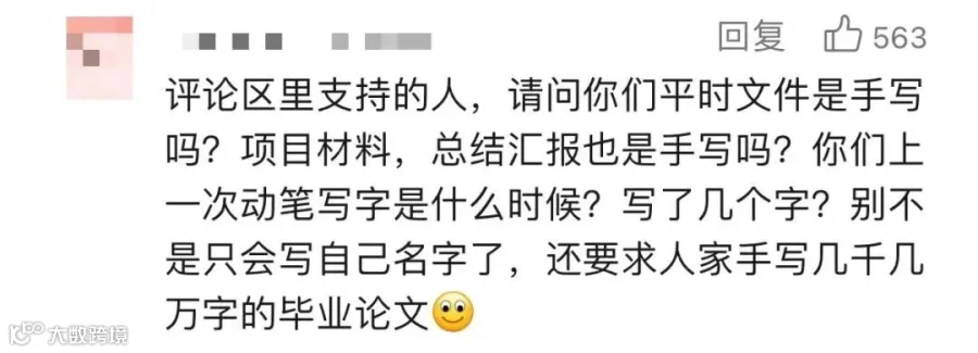 小玲说,同学们私下里也对此事讨论过,不少人认为,毕业论文占8个必修学分,其作为学术性论文,更应该看重内容而不是手写或者打印的形式。在书写方面,有专门的“三笔一画”考核,没有必要在毕业论文上体现。