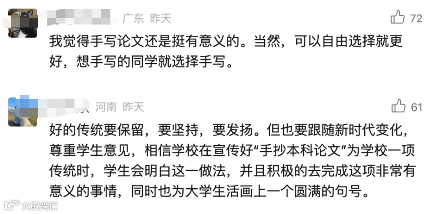 三、目前,文学院已经对学生手抄毕业论文的做法进行优化调整。