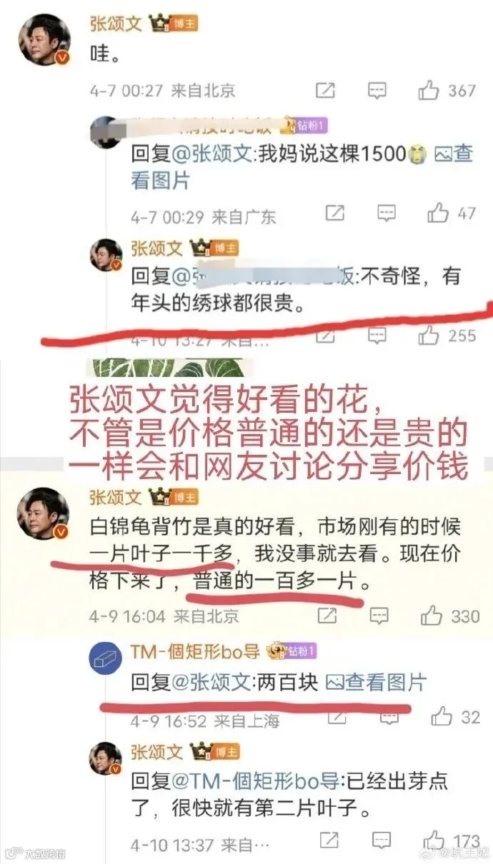 有网友认为,张颂文的砍价并非“立人设”,此前他也在评论区和大家讨论过花草植物的价钱。