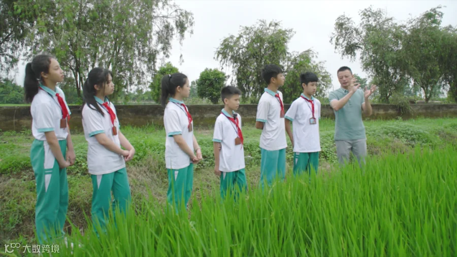 学生们来到田间,实地学习水稻相关知识。潘荣君摄