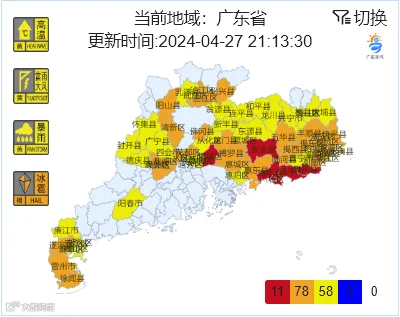 广东多地预警信号正在生效