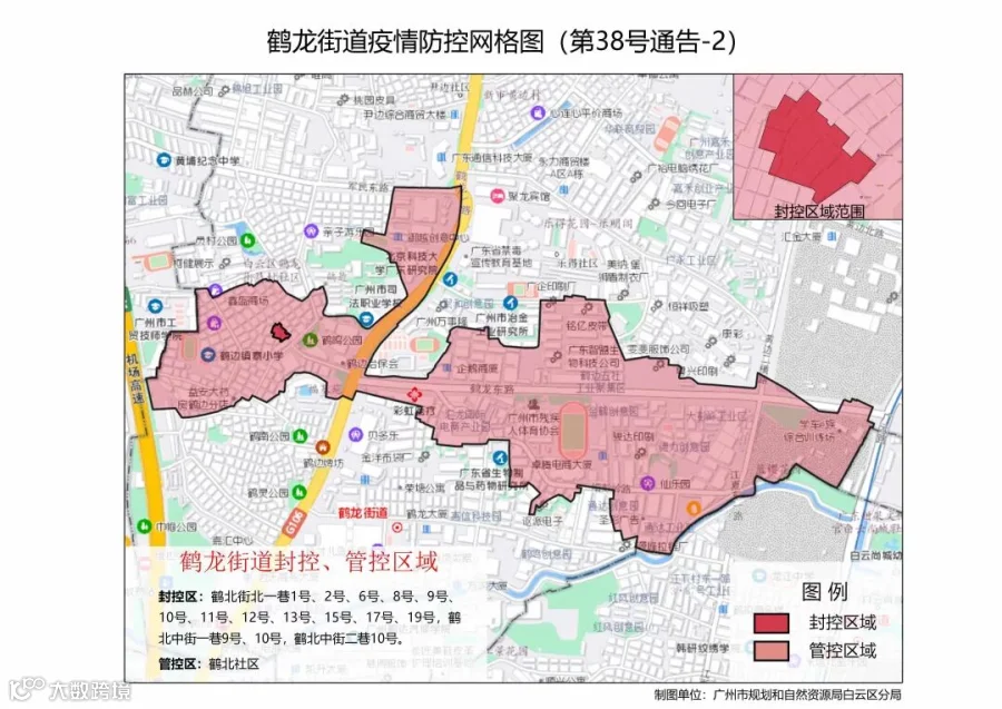 根据疫情防控形势,经综合研判,现就白云区新增封控区、管控区相关事宜通告如下: