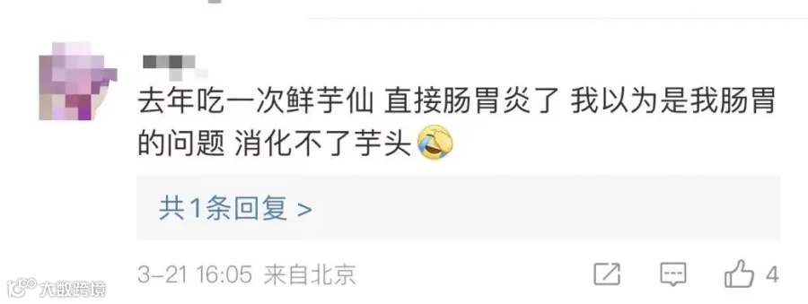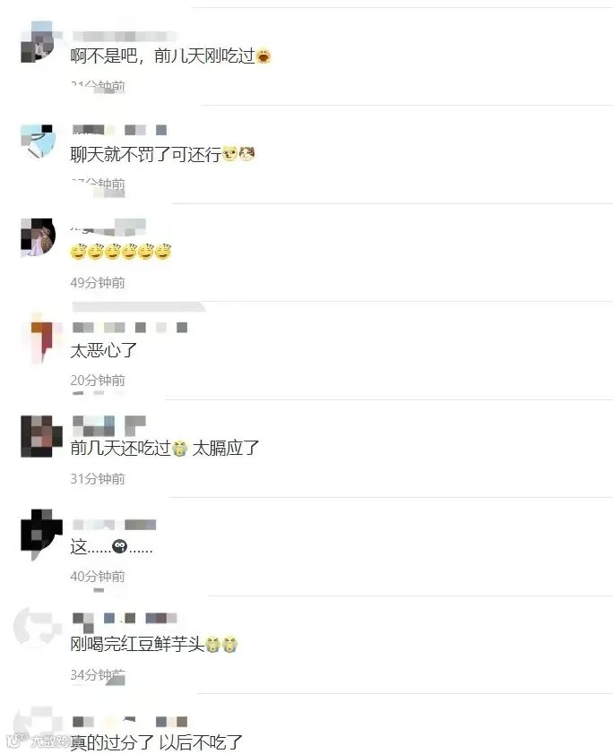 网友纷纷表示,“去年吃一次鲜芋仙直接肠胃炎了,我以为是我肠胃炎的问题,消化不了芋头。”“你伤到我了。”“我真的伤心了,我总吃。”还有网友称,“好好整改吧,难得有点喜欢吃的,别给倒闭了”“好好整你还是我的最爱。”“刚吃过,太恶心了”