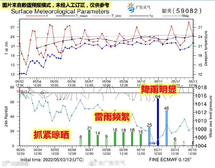 8~12日,雷雨依旧频繁,其中10~12日又有冷空气+切变线南下,我省将有一次明显降水过程。